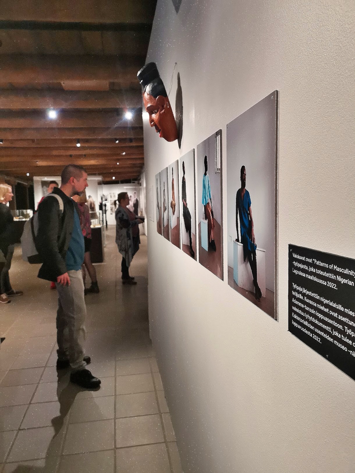 DANCO – School for De-Colonising the Art of Dance was invited to create an exhibition room for “Musem of Prehistoric Attitutes” of Lappeenranta Museum, Finland. We used our material from our workshop Patterns of Masculinity in Lagos, Nigeria, and produced a new dance film starring Emmanuel Ndefo. In the film, Ndefo is continuing his research on masculinity through Igbo-ritual Adamma. Our exhibition room consisted of six photographs from our workshop, clothes and a mask from ADAMMA-ritual, and a dance film.